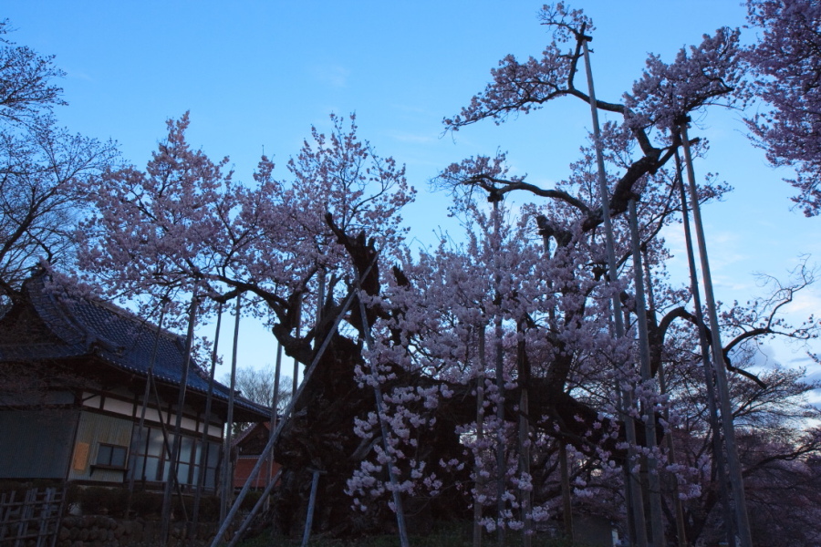 満開になったばかりの神代桜は残った枝からほとばしるように花をつけ、